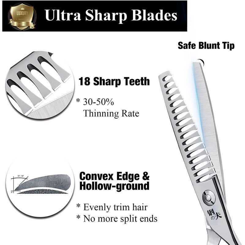 - ✄PREMIUM QUALITY - Made of high-quality Japanese stainless steel and tempered with precise blades and hand-sharpened edges, our hair cutting/thinning scissors is a good choice to trim or texturize hair for stylish looks.