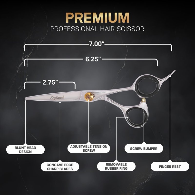 - ✅ [Adjustable Screw] - With 7 inch Stylonik hair cutting scissors comes with adjustable tension screw for users to fine tune and control the flow of hair cutting as desired. Also highly sharp cutting edge with adjustable screw allows you to cut hair with balance.