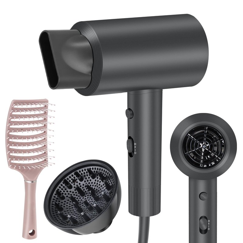 Hair Dryer, Dongxw 1600W Ionic Blow Dryer with Diffuser, Lightweight Hair Dryers & Accessories Low Noise Professional Portable Hairdryer for Women Men, Grey