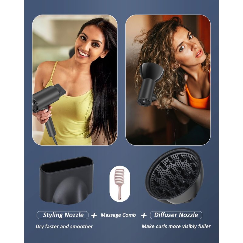 - 🌌【Efficient Styling】Our upgraded 2000W hair dryer gives you powerful airflow for quick and easy styling. The specialized concentrator and diffuser nozzles are perfect for any hair type - straight or curly. Lightweight and portable, easy to carry and store.