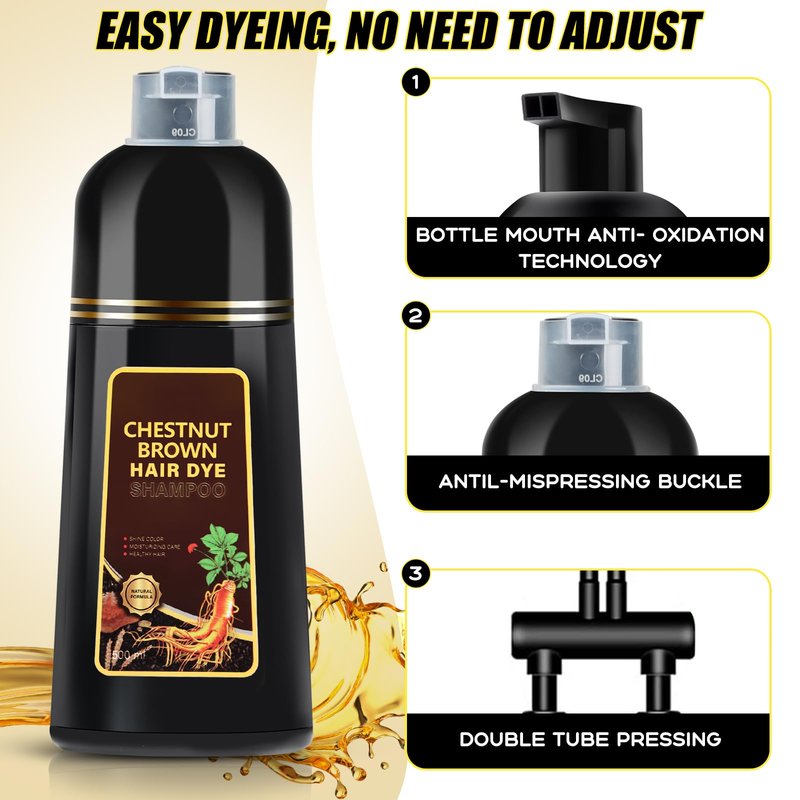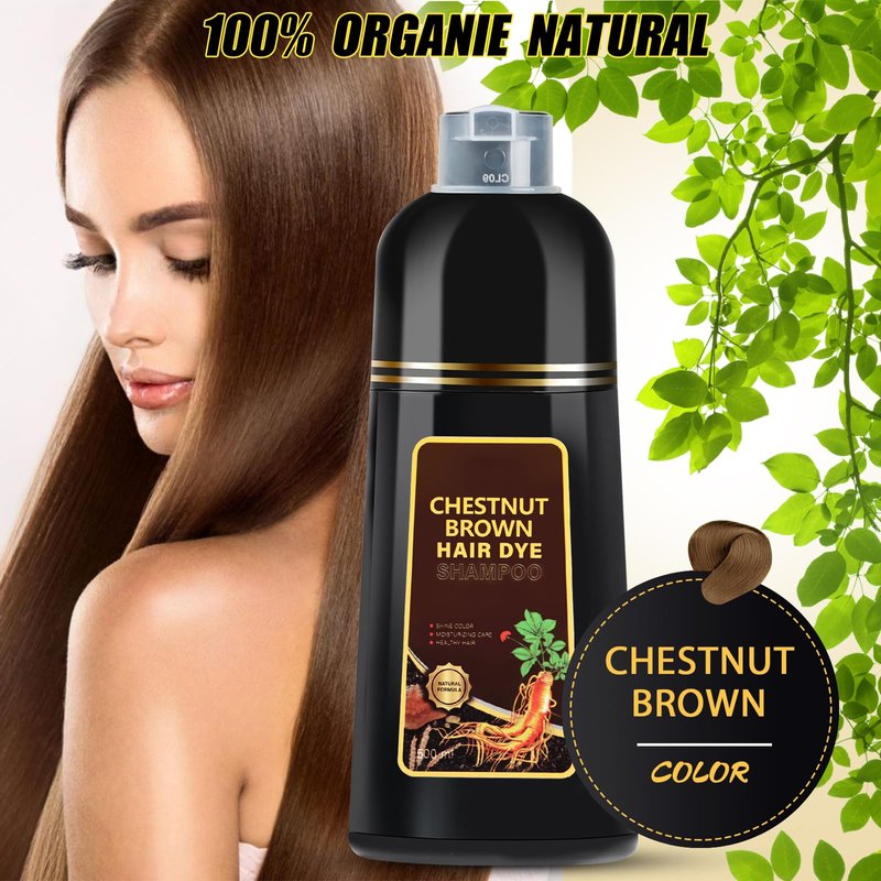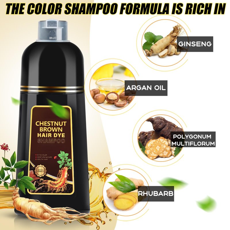 Hair Dye Shampoo 3 in 1, Herbal Shampoo Hair Dye for Women Men, Grey Coverage Shampoo 16.9fl oz (Chestnut Brown)