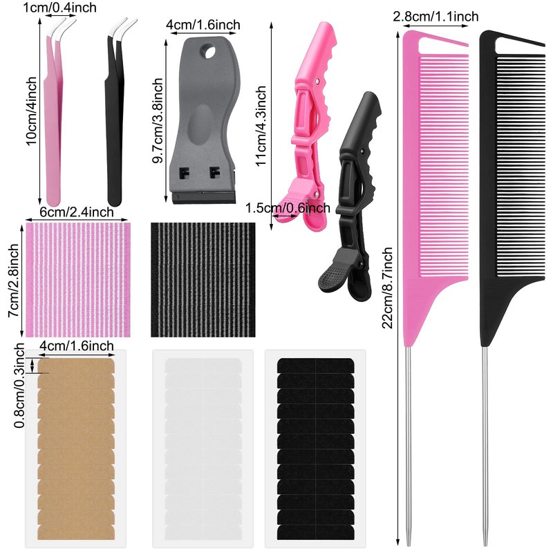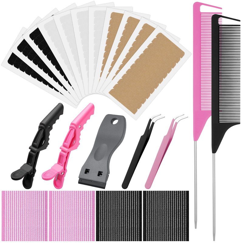 - What You Will Get: you will receive 12 sheets (288 pieces) of double sided replacement tape, 24 pieces each; 1 plastic scraper, 2 elbow tweezers, 2 pointed tail combs, 2 salon alligator hair clips, 2 sets of bangs stickers; The quantity is enough to meet and satisfy your daily use, the color is classic, and you can also share with your good friends or family