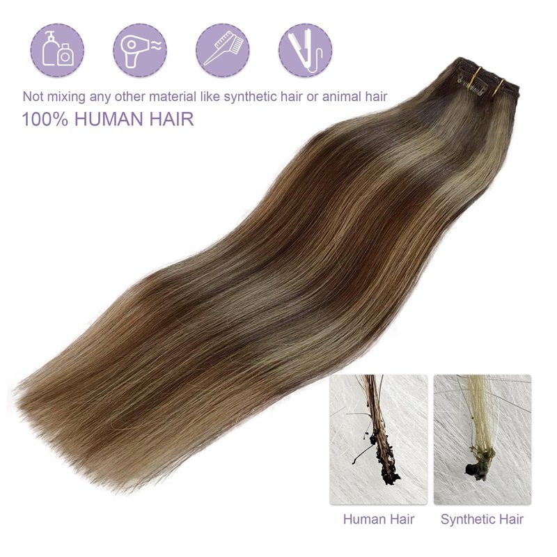 - Real Human Hair: No animal hair or synthetic hair, passed the burn test, clip in hair extensions are smooth and shiny, slight frizz, more flattering to your hair, natural and durable