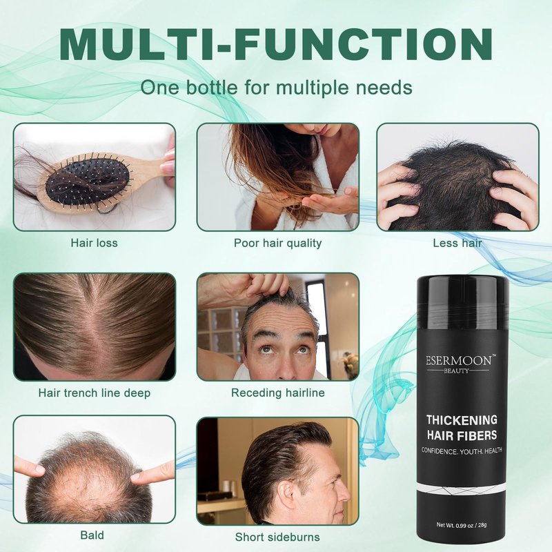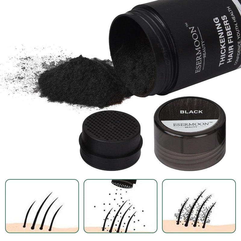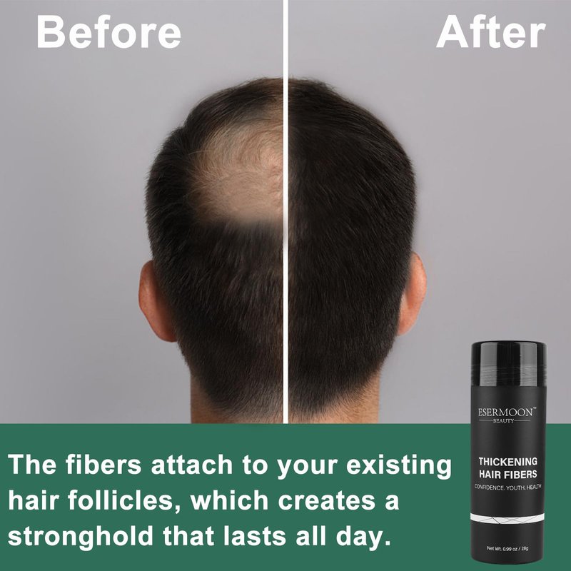 - ➤【SAFE FORMULA】-Crafted from plant fiber and 100% natural keratin, ESERMOON hair-increasing fiber is designed to be gentle on the scalp, avoiding pore clogging and ensuring a healthy application.