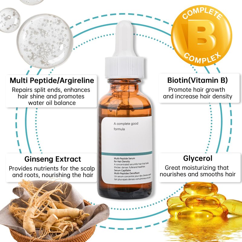 Hair serum contains multi peptide, which can effectively help hair grow naturally, nourish scalp and help you grow thicker, stronger and fuller hair.