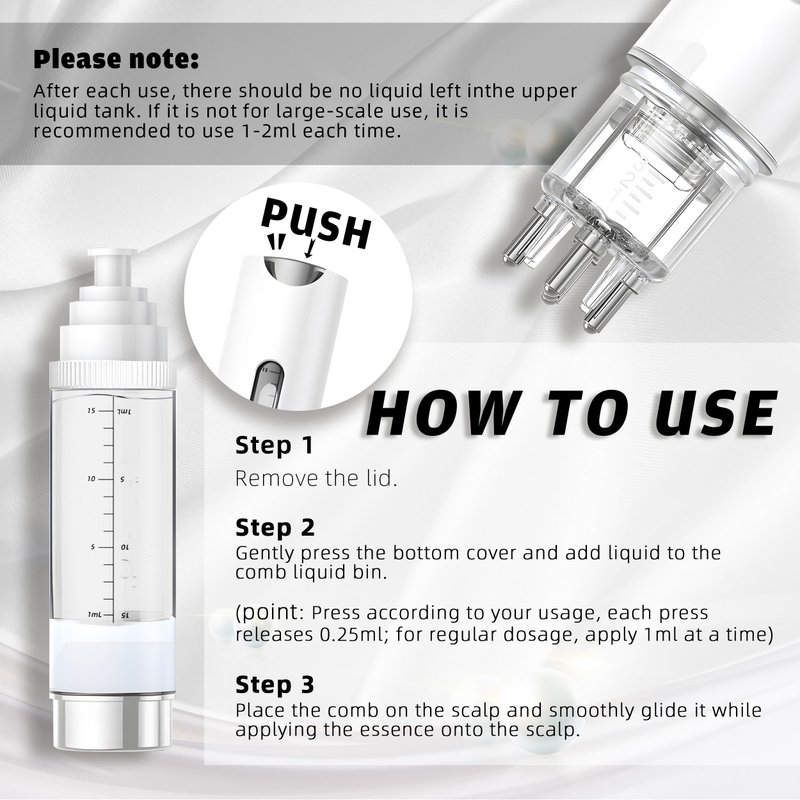 - 【Innovative Design】: This Hair Growth Serum with Applicator is specially designed for people with scalp/hair problems. It has a 15ml liquid storage compartment and a 3ml dispensing chamber, which ensures precise dosing as low as 1ml to prevent waste. Simply press the top button, and the liquid dispensed each time is accurately measured to 0.25ml. It is designed for hair care.