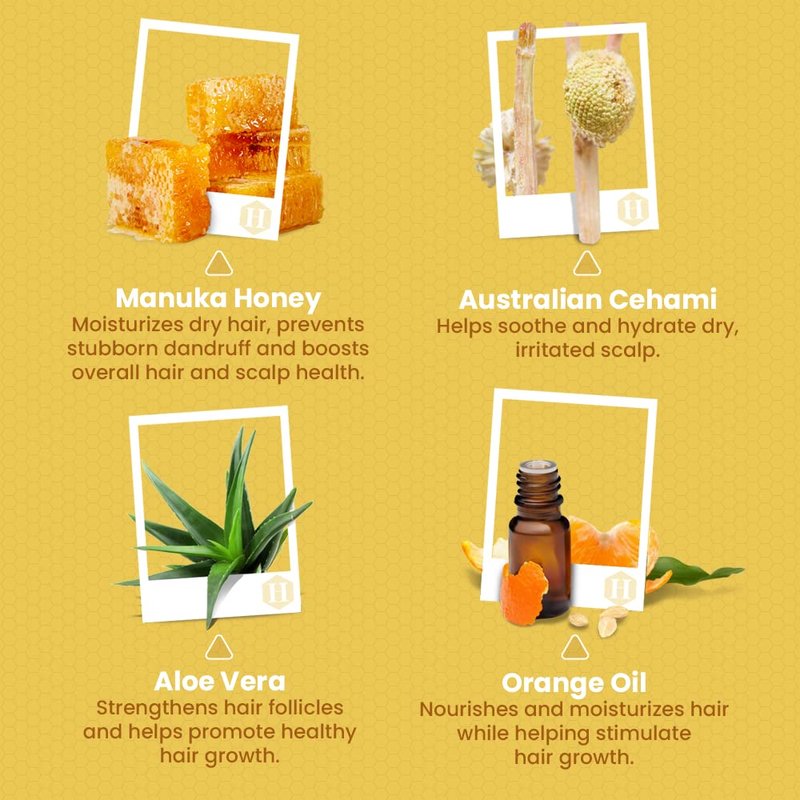 - NATURAL AND ORGANIC INGREDIENTS - Unlike most hair growth products, our itchy scalp shampoo and conditioner for thinning hair are infused with some of nature’s most powerful ingredients like Manuka Honey, Aloe Vera, Cehami, and Orange Oil to keep your hair and scalp strong, nourished, and healthy.