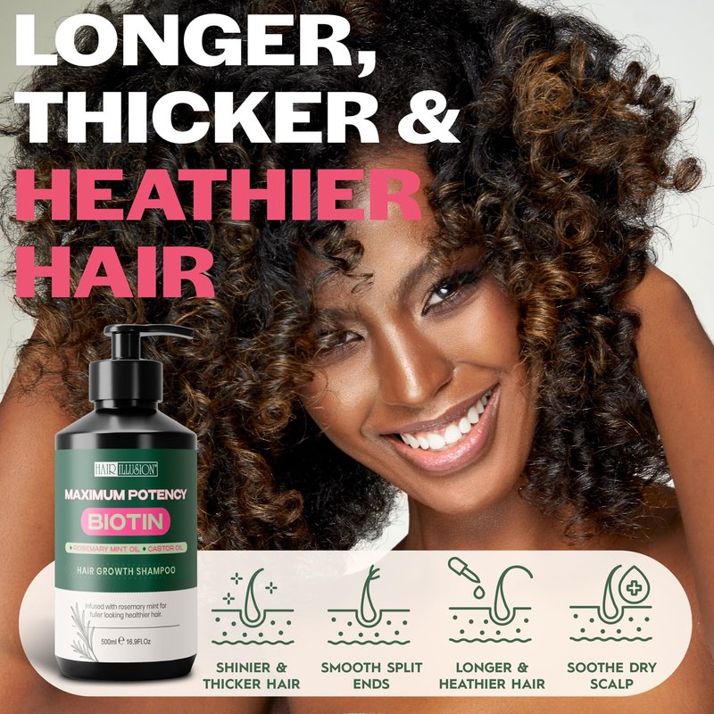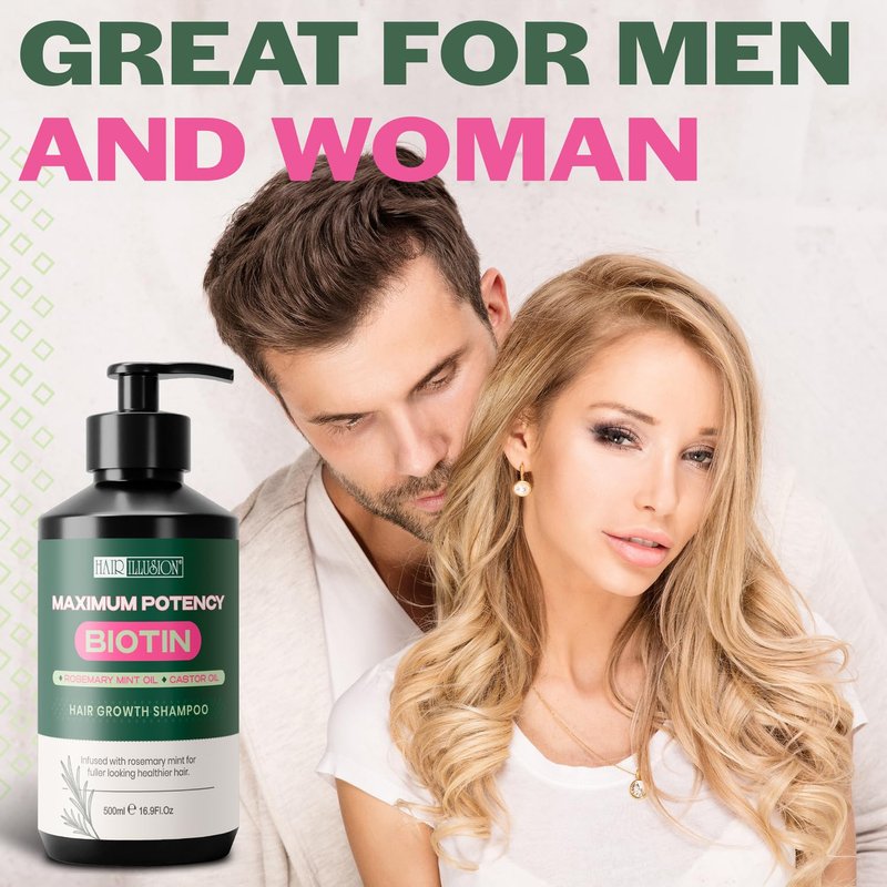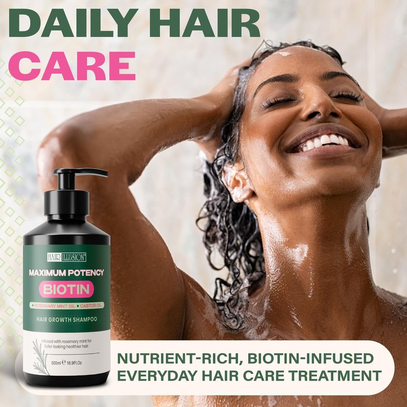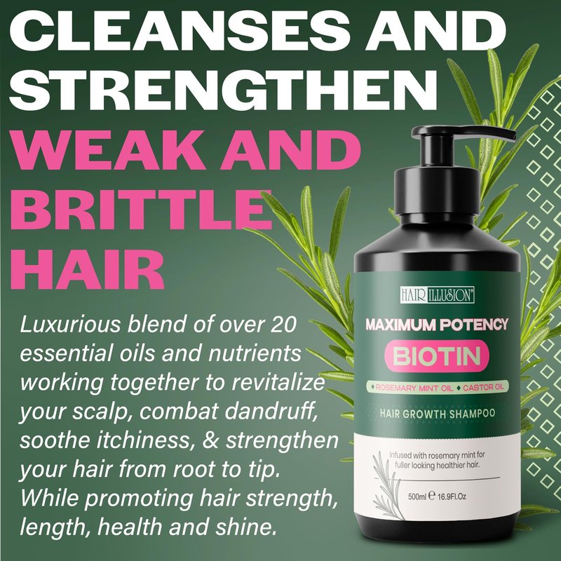 Hair Illusion Maximum Potency Biotin Hair Growth Shampoo| Infused with Rosemary & Castor Oil for Hair Loss and Thinning hair. Natural Shampoo, Sulfate Free