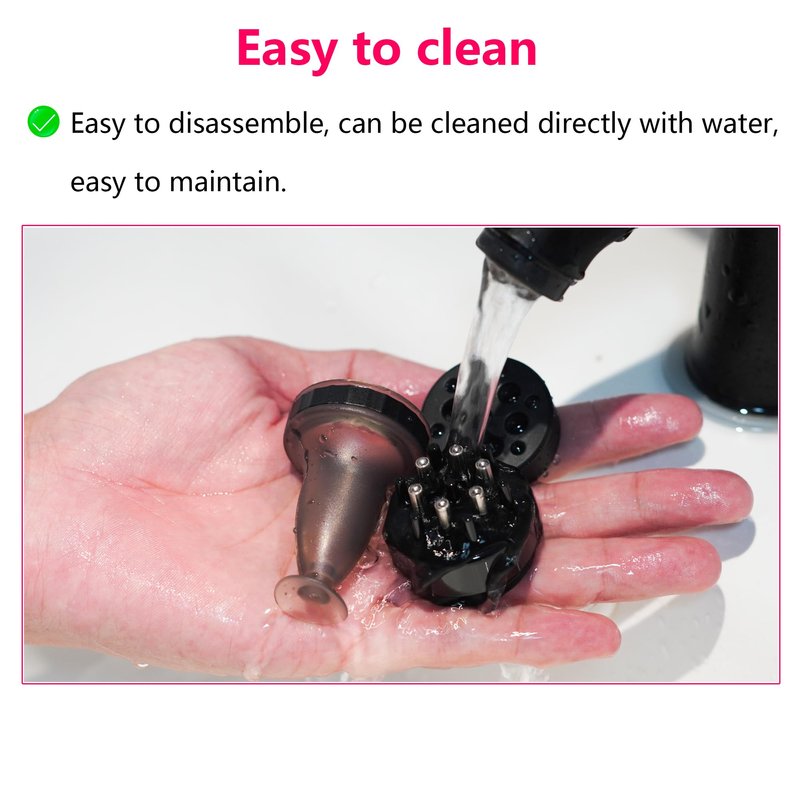 - Design: The drain holes are elastic spherical teeth, and when in contact with the scalp, the fluid is discharged