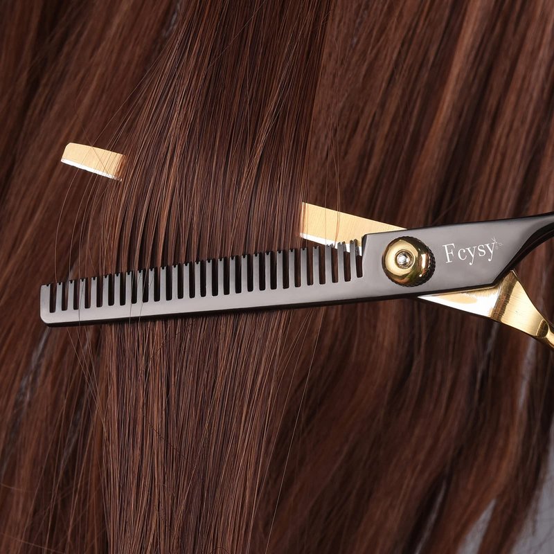 - 💇〖Professional Hair Shears Set〗With a length of 6 inches, and safe smooth blade top design Fcysy hair scissors set is safe and easy to use on men, women, the elderly, children, and babies! With a sleek stainless-steel texture, our scissor reduces messy hair clutters as no hair gets caught in between its thinning blades, unlike other hair thinning scissors on the market.