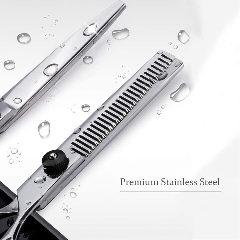 - 💇UPGRADED HAIRDRESSER SHEERS SET: Offer more convenient barber supplies to customers, this version hair trimming scissors are coming with a comb and stored in an exquisite leather hair sissor bag. Using the tijeras de peluqueria professional with all the accessories here.