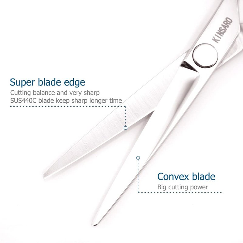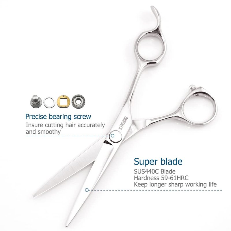 - Brand introduction: KINSARO-Only design,produce and sell professional hair scissors with high cost performance more than 10 years.All of the KINSARO hair scissors can be used at barbers,hair salon or hair studio.All KINSARO hair scissors blade hardness are more than 58HRC.Hardness 58HRC is one requirement of professional level hair scissors.Click "Visit the KINSARO Store" above the title,you will find many styles KINSARO hair scissors.KINSARO hair scissors,because focus so professional.