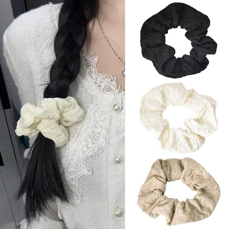 Hair Scrunchies for Women Girls Elastic Hair Ties Scrunchies Hair Bands Fashion Wrinkle Texture Ponytail Holders French Rubber Bands Big Hair Rope Hair Accessories for Thin Thick Hair (3Pcs)