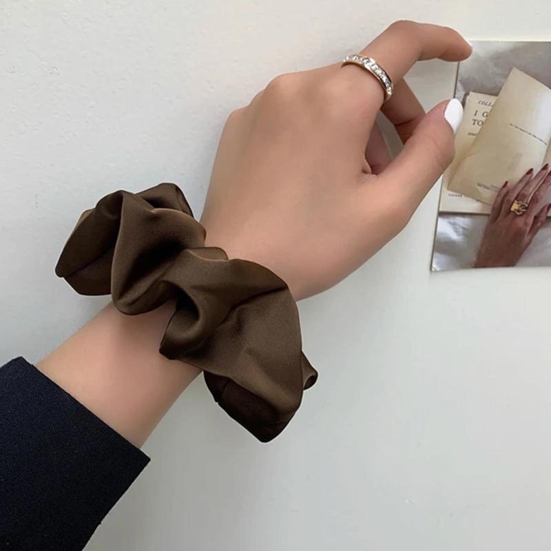 Hair Scrunchies Silk Hair Ties for Women Black Silk Scrunchies for Hair Brown Elastic Hair Scarf Scrunchie for Thick Hair Solid Color Ponytail Holder Satin Hair Scrunchies Satin Hair Scarf 2Pcs