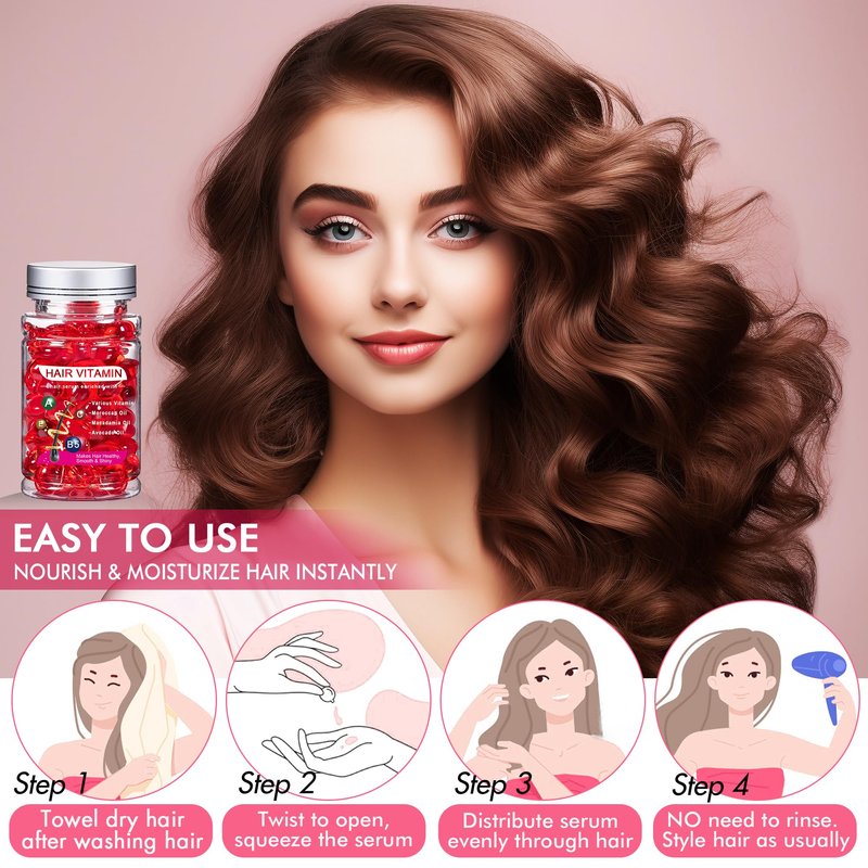 - Easy to Use Hair Care: NO-RINSE needed hair mask. Just apply the hair serum from this hair oil capsule after each hair wash, then style or dry your hair as you wish. Each bottle of hair vitamins contains 40 capsules. One capsule (1ml / cap) with travel size is enough even for long hair. Kindly Notes: Just for EXTERNAL USE