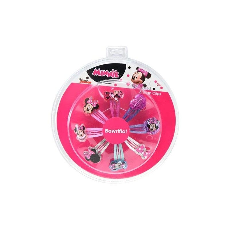 Hair Snap Clips Barrets with Plastic Motifs (8 Clips, Minnie, Glitter)
