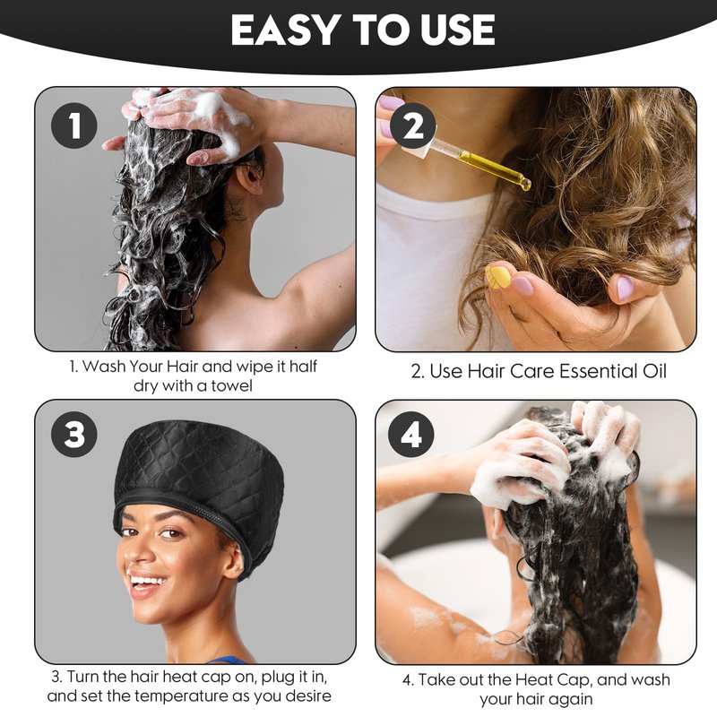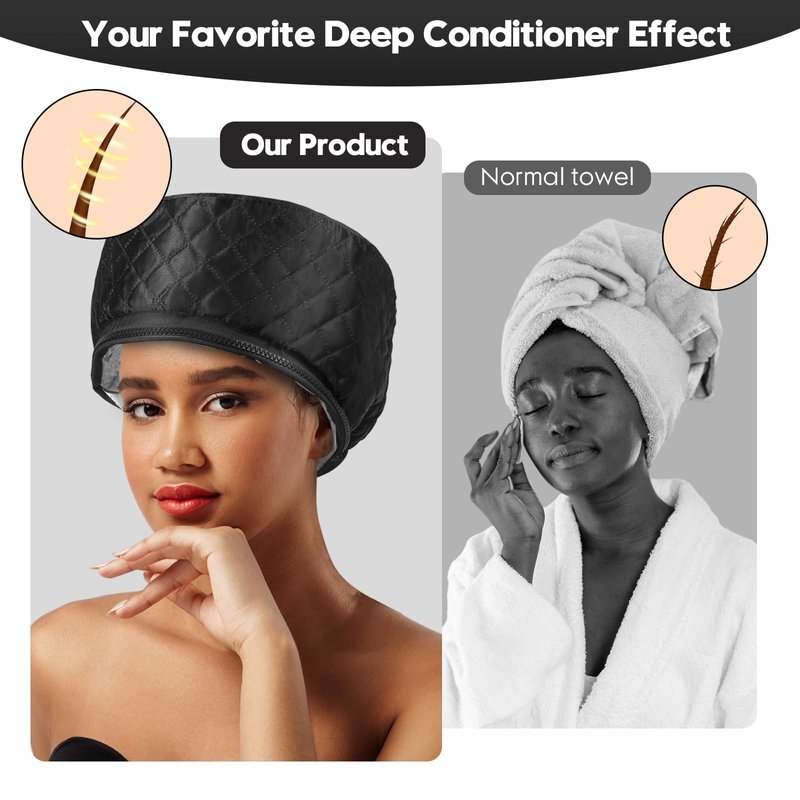- 【Deeper Conditioning Experience】The hair steamer provides deep conditioning sessions for natural hair, including masks and oil treatments. By emitting gentle heat, the steamer cap effectively opens the hair cuticle, enabling the products to deeply penetrate the strands and ensuring absorption better. With this convenient tool, you can achieve the results of a salon effect within the comfort of your home.
