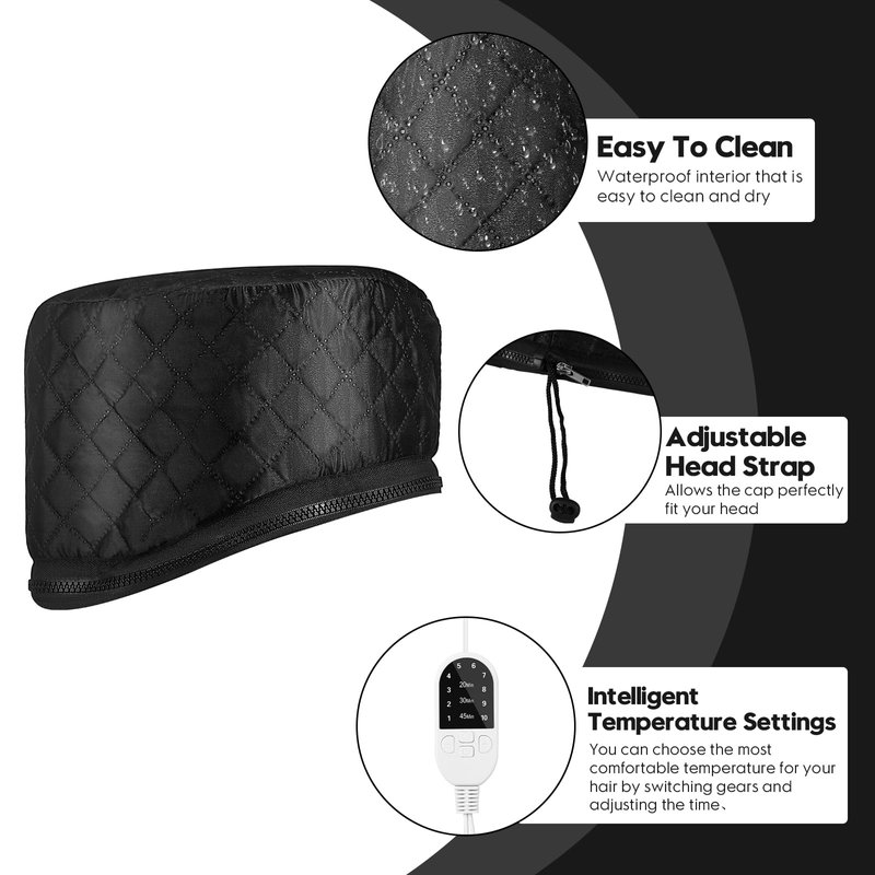 - 【Smarter Hair Cap】This heat cap has 10 temperature control modes and 3 timer(30-45-60 Min) setting. You can choose the most comfortable temperature and time range according to your needs