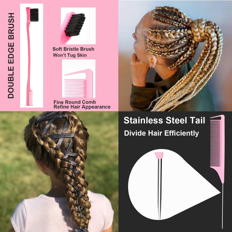 Hair Styling Comb Set 6 PCS, Teasing Hair Brush, Rat Tail Comb Edge Brush, Hair Tail Tools for Women Girls Kids Braiding Backcombing Styling (Pink)