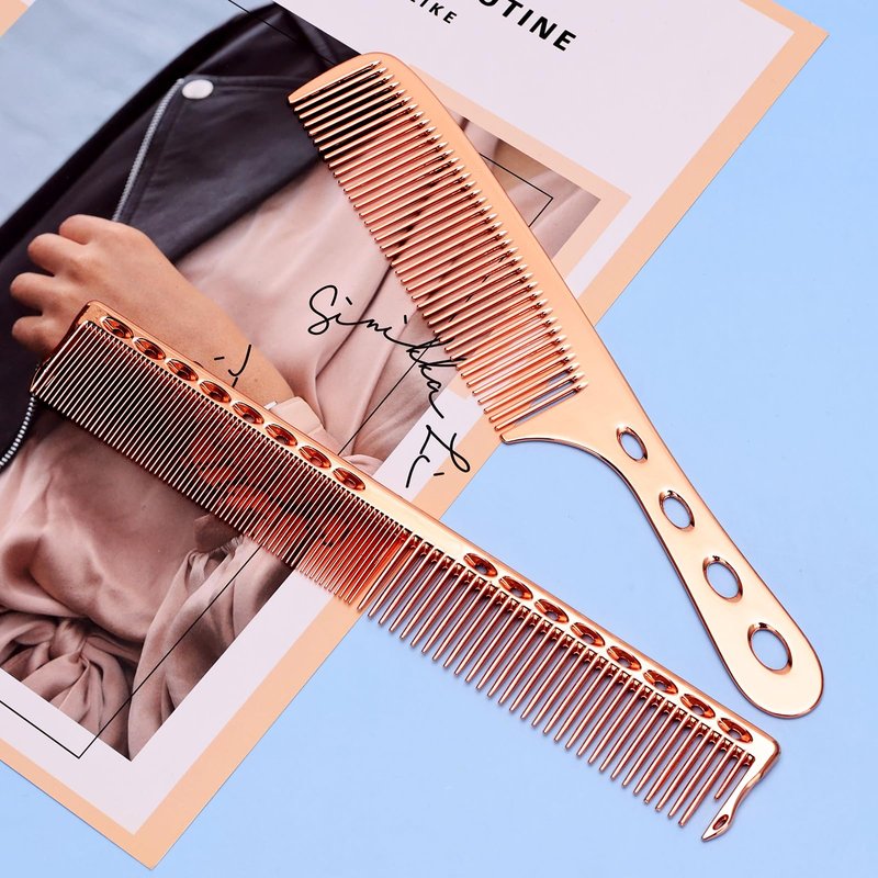 Hair Styling Comb,2PCS Metal Combs For Hair Women,Space Aluminum Stainless Steel Anti-static Sparse Haircut Comb Beauty Tool (Rose Golden)