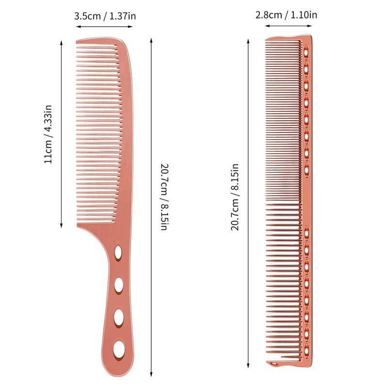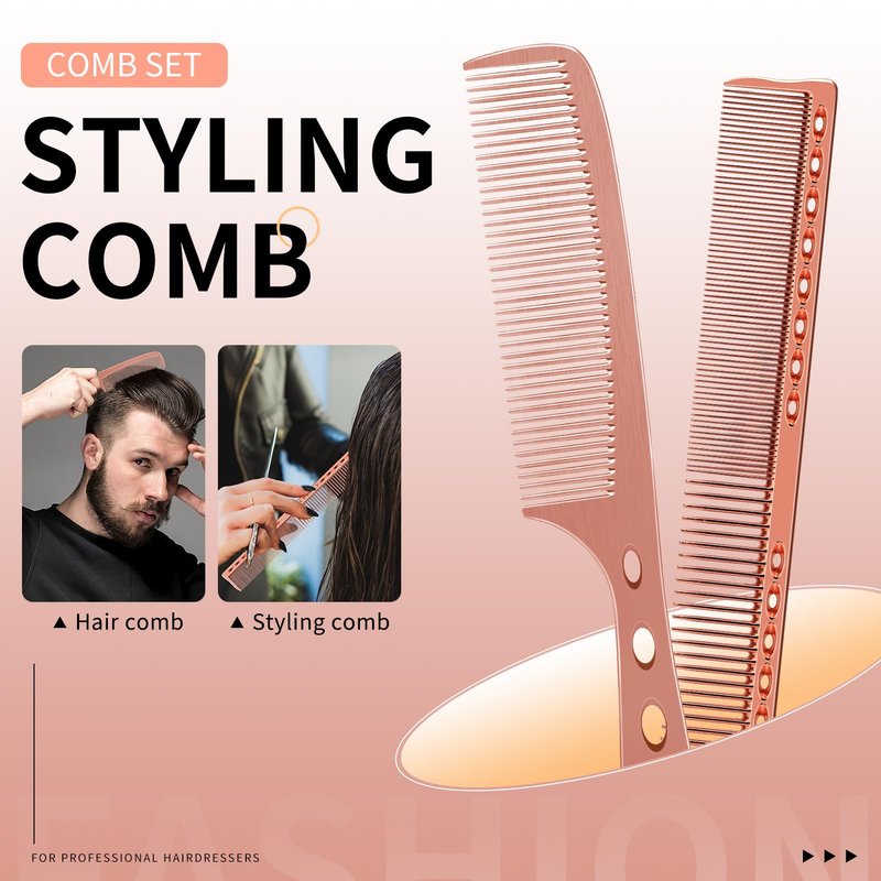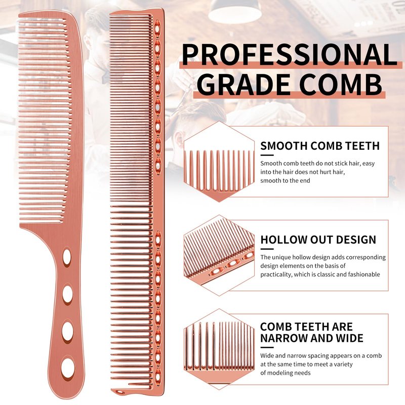 - 2.Space Aluminum:Made of Space Aluminum, eco‑friendly, no harm to hair and scalp.not easy to break, lightweight and durable can serve for a long time use. Good functions: these styling combs are durable and flexible, the sturdy teeth of cutting comb could avoid pulling, tangling or damaging hair, easy to hold and operate, can reduce the pressure of wrists