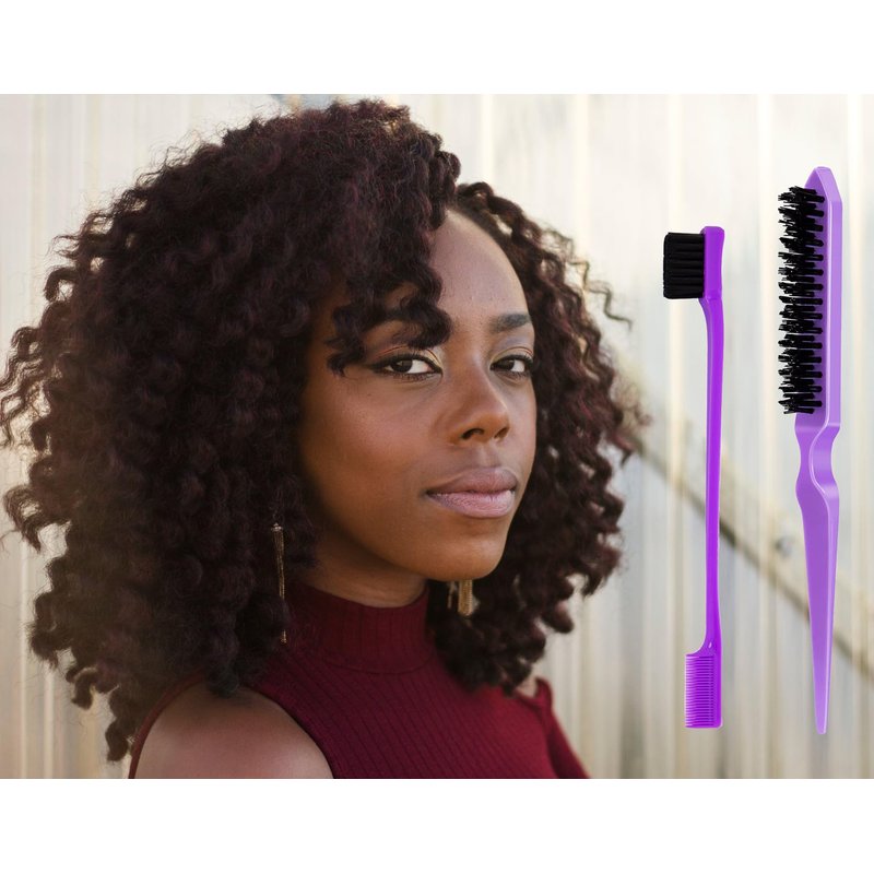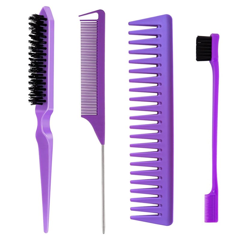 Hair Styling Set for Women, Girls & Kids: Teasing Brush, Rat Tail Comb, Edge Brush for Braiding & Backcombing Styling (Purple)