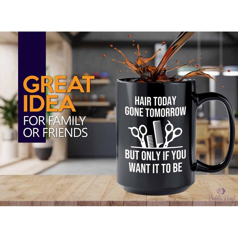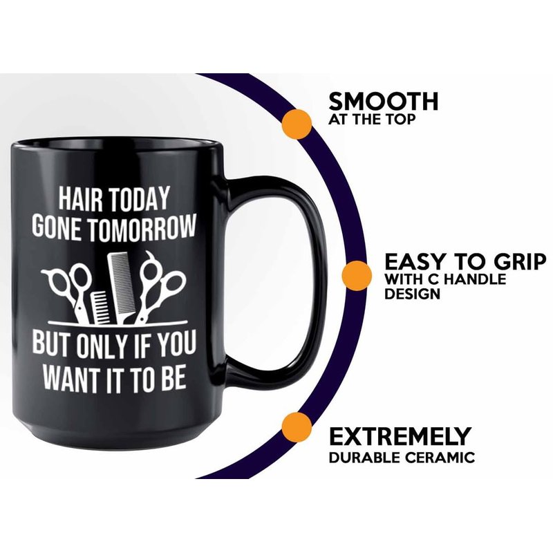 Hair Stylist Coffee Mug 15oz Black - Hair Today Gone Tomorrow - Hair Stylist Gift Beautician Hairdresser Salon Barber Hairdo Cosmetoloist Scissors Blower