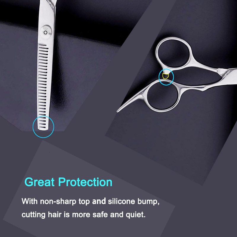 - Stainless Steel - Precise blades and hand-sharpened cutting edges to treat hair with ease. Stainless steel material will keep your scissors stay longer life.