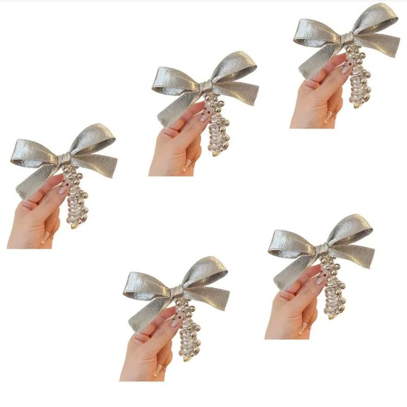 Hair Ties, 5pcs Bow Pearl Elastic Telephone Line Hair Rings, Hair Tie, Hair Tirs, Plastic Hair Ropes Rubber Straight Hair Bands Hair Ties