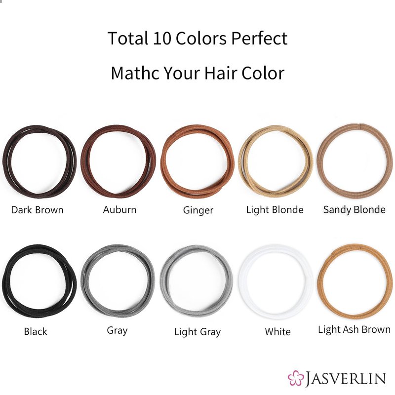 - 【10 Assorted Suitable for All Ages and Hair Types】10 natural color options hair ties are perfect for blending in with any hair color or outfit style. Focus on the needs of everyone, our ponytail holders perfect for women, girls, and men with thinner fine to medium hair, whether straight or curly. Choose from White, Black, Gray, Sandy Blonde, Light Blonde, Auburn, Light Ash Brown, Dark Brown, Ginget or collect them all!