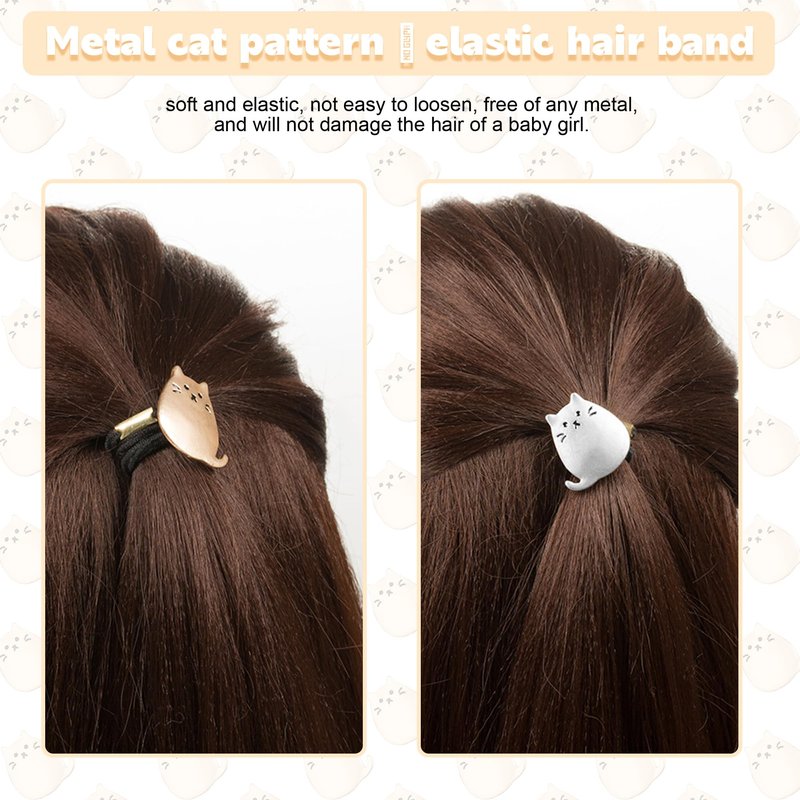 - 🌟 Unique Cat Design: Dive into the delightful and whimsical world of feline fashion with our cat hair ties. The stunning gold and silver metal cat designs will make any outfit pop and keep you looking fabulous!