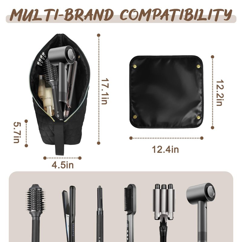 - 【Multipurpose Hair Tools Travel Bag】This 2 in 1 hair tool travel bag can be used to hold various hair styling tools, such as flat irons, curling irons, hair straighteners, hairbrushes, small hair dryers and other styling accessories, etc.
