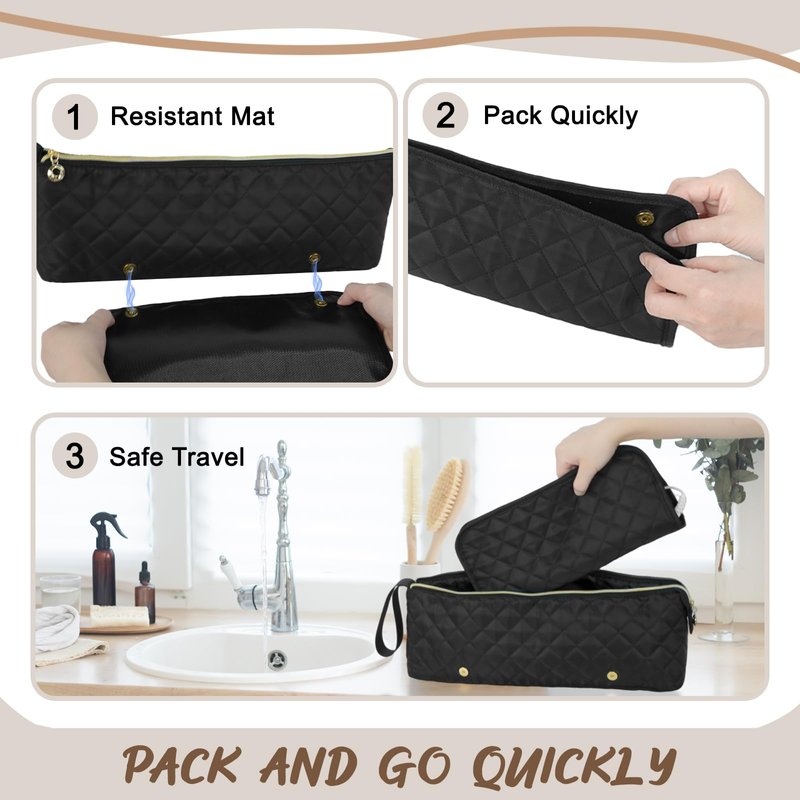 - 【Heat-Resistant & Waterproof Material】This heat-resistant mat for curling iron is made of fire-resistant material, the hair tools organizer bag has waterproof function, it can keep your tools and accessories dry when using them in the bathroom.