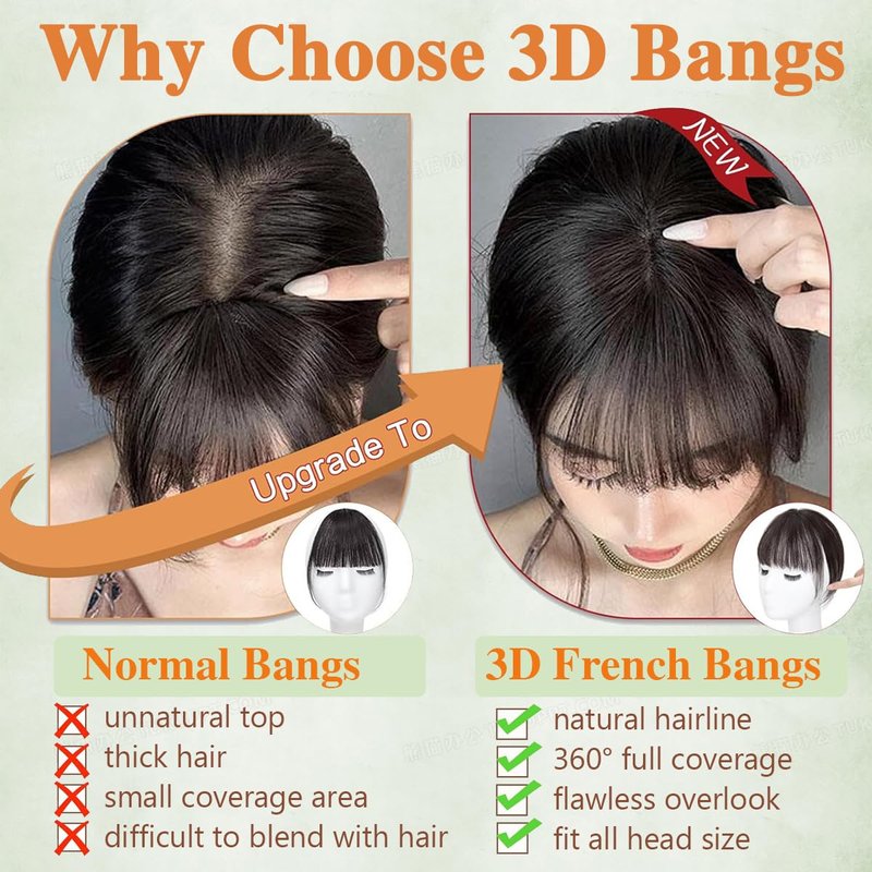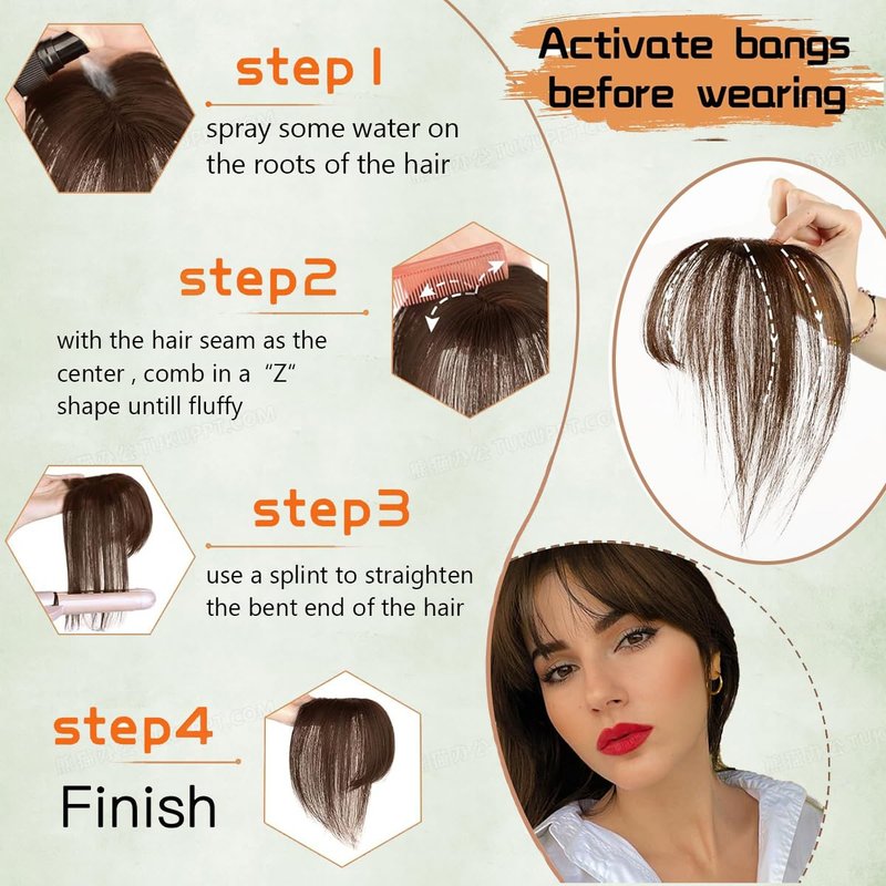 - 【Warm Tips】After a long time of transportation, receiving the bangs hair clip will become a little collapsed,.Don’t worry, please refer to the video to take care of it before wearing.After treatment the bangs clip will become very fluffy and shapely.