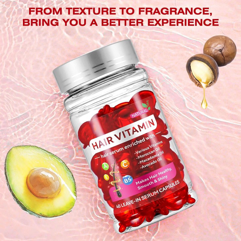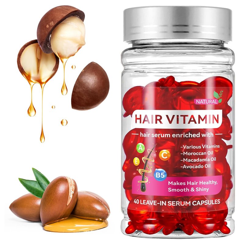 Hair vitamins oil capsules for women & men, hair serum A C E Pro B5 50 for frizzy & dry damaged hair, vitaminas para el cabello cápsulas w/ argan avocado, moroccan oil for hair loss treatment & growth
