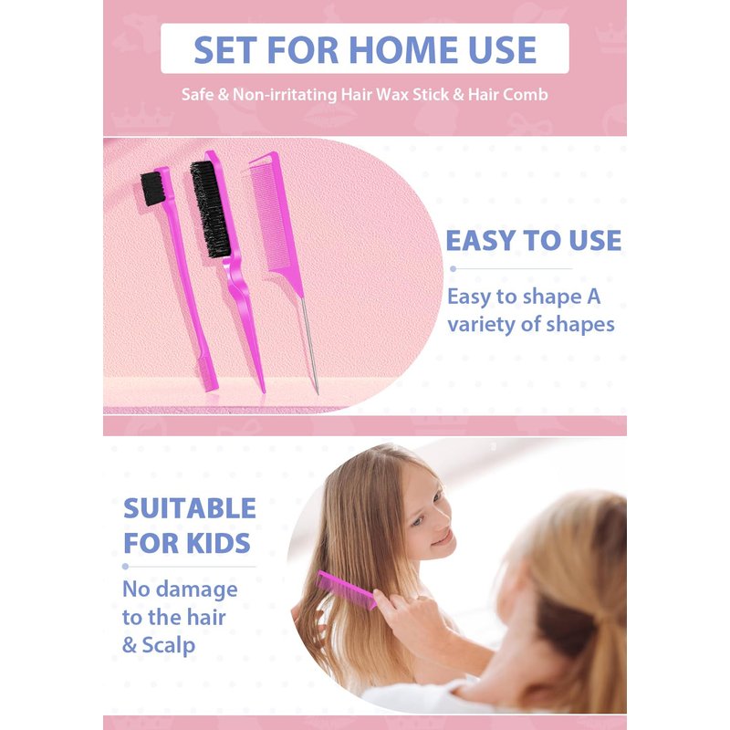 - 【Parting Combs Wax for Braiding Hair】: Hair wax stick for flyaways natural hair wigs frizz tame, hair slick stick for edge control, slick back hair stick slick back hair brush for styling smoothing, edge brush, rat tail combs, teasing comb.