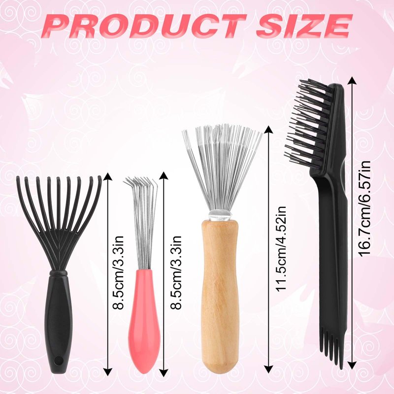 - COMPREHENSIVE SET:This hair brush cleaner tool combines a black double-headed brush, a wooden handle cleaning rake, a pink mini hair cleaning brush, and a black plastic cleaner claw. Ideal for thorough hairbrush cleaning