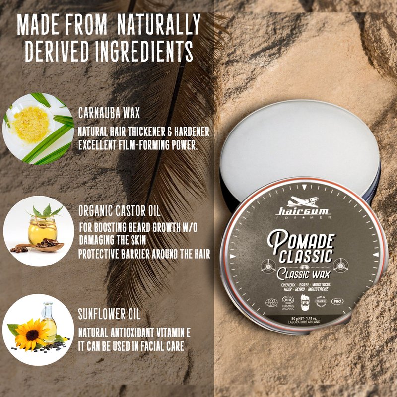 - MENS CLASSIC HAIR WAX - The mens classic hair pomade contains natural oils that provide hair protection. This hair styling pomade for men gives firm hold with natural shine and hair control to your hair and beard.