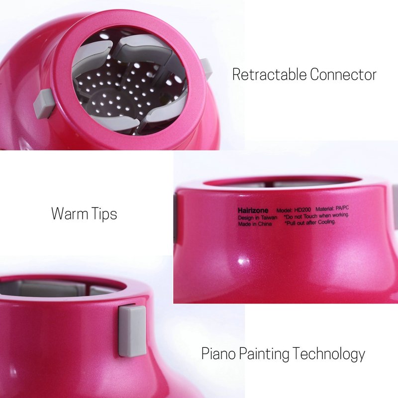 - New patented hair diffuser with lockable buttons. Streamline design, shiny roseo finishing with piano painting.