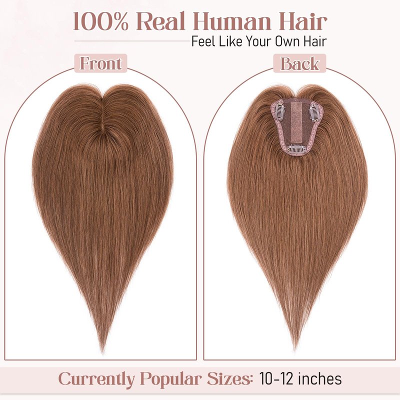 Hairro Human Hair Toppers Real Hair, Clips in 100% Human Hair Hairpieces for Women, 3.15"x3.94" Silk Base for Thinning Hair/Hair Loss/Covering Greyish Hair on Top