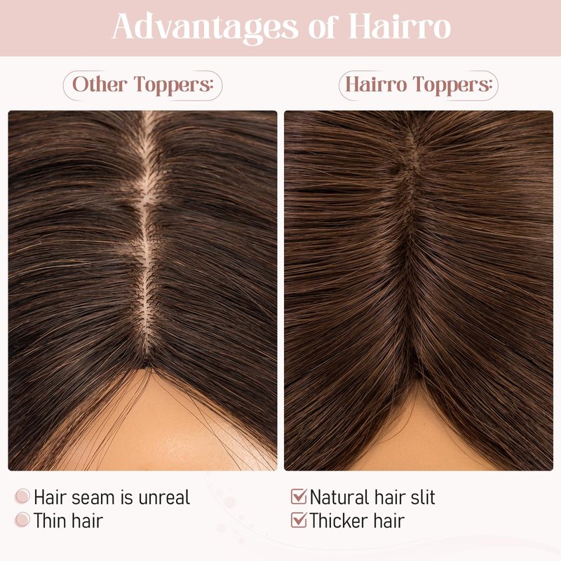 - 100% Real Human Hair - Hairro's human hair topper are handmade with real human hair to give more fine texture, natural looking, and a perfect fit. As human hair, it allows you to restyle with heat tools and color as you want.