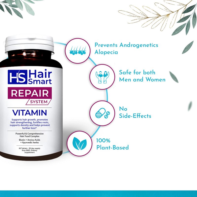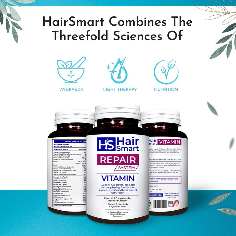 HairSmart Multi-Vitamin for Hair Growth - 100% Herbal Supplement with Ayurvedic Herbs; for stimulating Hair Growth, strengthening Hair Roots Hair Loss Prevention for Men and Women 3 Pack of 60 Tablets