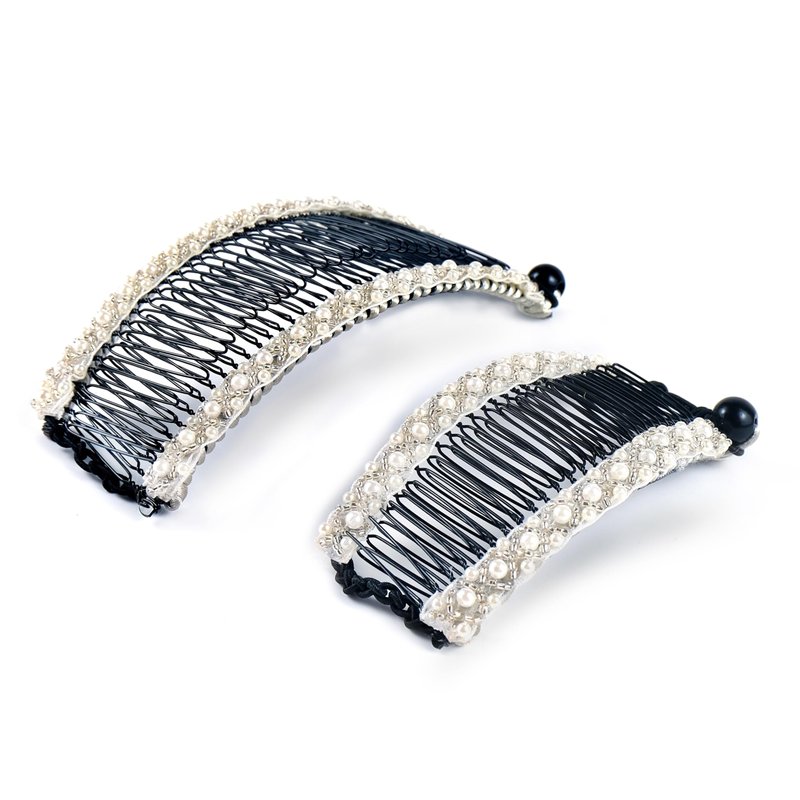 Upgrade your collection of other pearl hair accessories with this reinvented banana clip that is guaranteed to hold your thick, naturally curly, wavy hair. A bold statement accessory adorned with silver spikes for an added element of flair.From jeans and a tee to a sophisticated evening dress, this banana clip effortlessly adapts to your personal style. Edgy, confident, and uniquely yours. Graceful alluring white pearls that effortlessly complement a spectrum of colors, allowing it to seamlessly blend with any wardrobe. Whether worn with an updo or used to secure a casual ponytail, this accessory effortlessly elevates your style to both classic and contemporary.