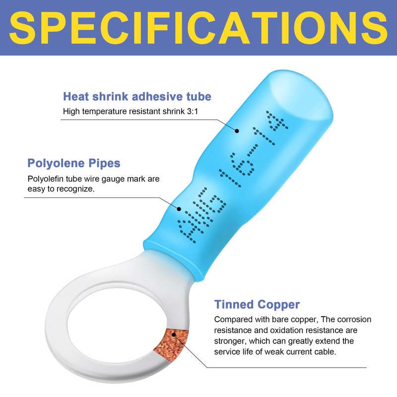 - Flexible Application:The 100pcs heat shrink ring terminals work for wire gauge AWG 16-14 #10.For motorcycles,automobiles,Tractors,boats,etc.