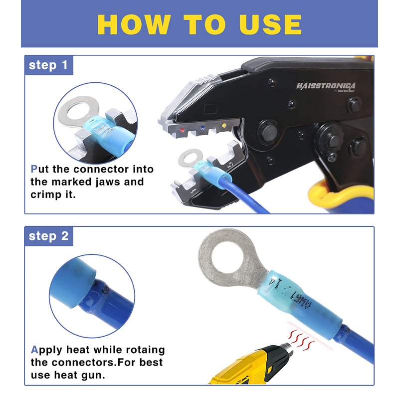 - Live Without Limits:Don't be held back by a humble looking wire connectors.Haisstronica heat shrink connectors are made of tinned copper.The tinning process is designed to effectively prevent copper from being oxidized and reduce resistance.While higher purity copper enhances electrical conductivity.