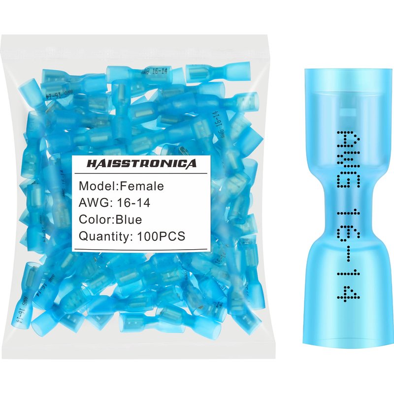 haisstronica 100pcs Blue Heat Shrink Female Spade Connectors,16-14 Gauge Insulated Electrical Crimp Wire Terminals
