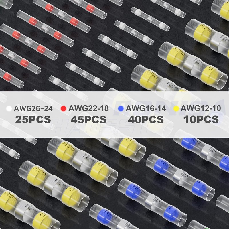 - One and Only:Uniquely marked with wire gauges on the polyolefin tubing,Haisstronica's butt connectors are designed for easy identification and quick selection of the appropriate connector.
