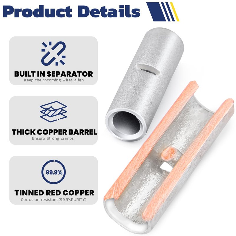 - Excellent Conductivity: Made from pure copper, these butt connectors offer excellent conductivity for efficient and reliable electrical connections.