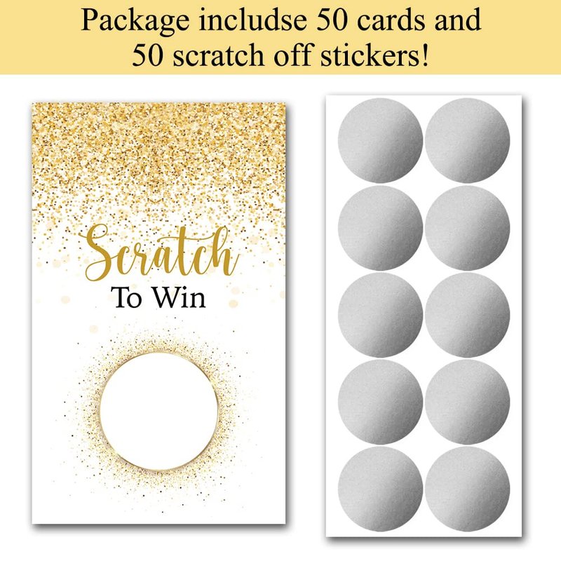 - Package Contents: You will receive a total of 50 cards - 42 "lose" + 8 "win" cards. Each card is 3.5" x 2" and has a permanent silver foil seal scratch display, giving you a quick idea of how much prizes you want for your special event.