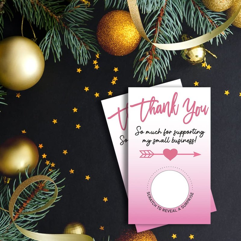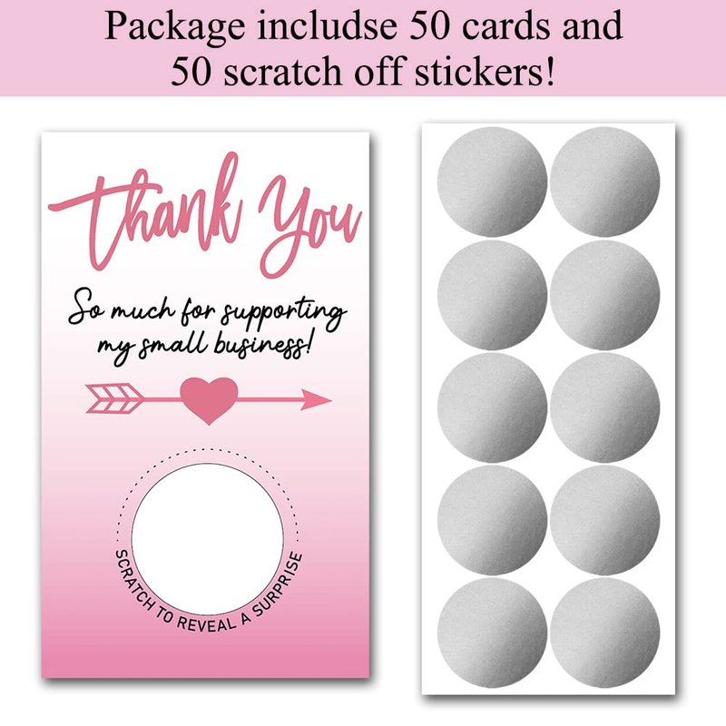 Haizct 50 Pack PinkThank You Blank Gift Certificate Scratch Off Cards for Small Business, Spa Beauty Makeup Hair Salon, Bridal Shower, Baby Shower, Country Wedding (Thank You CardF), Silver-GK091